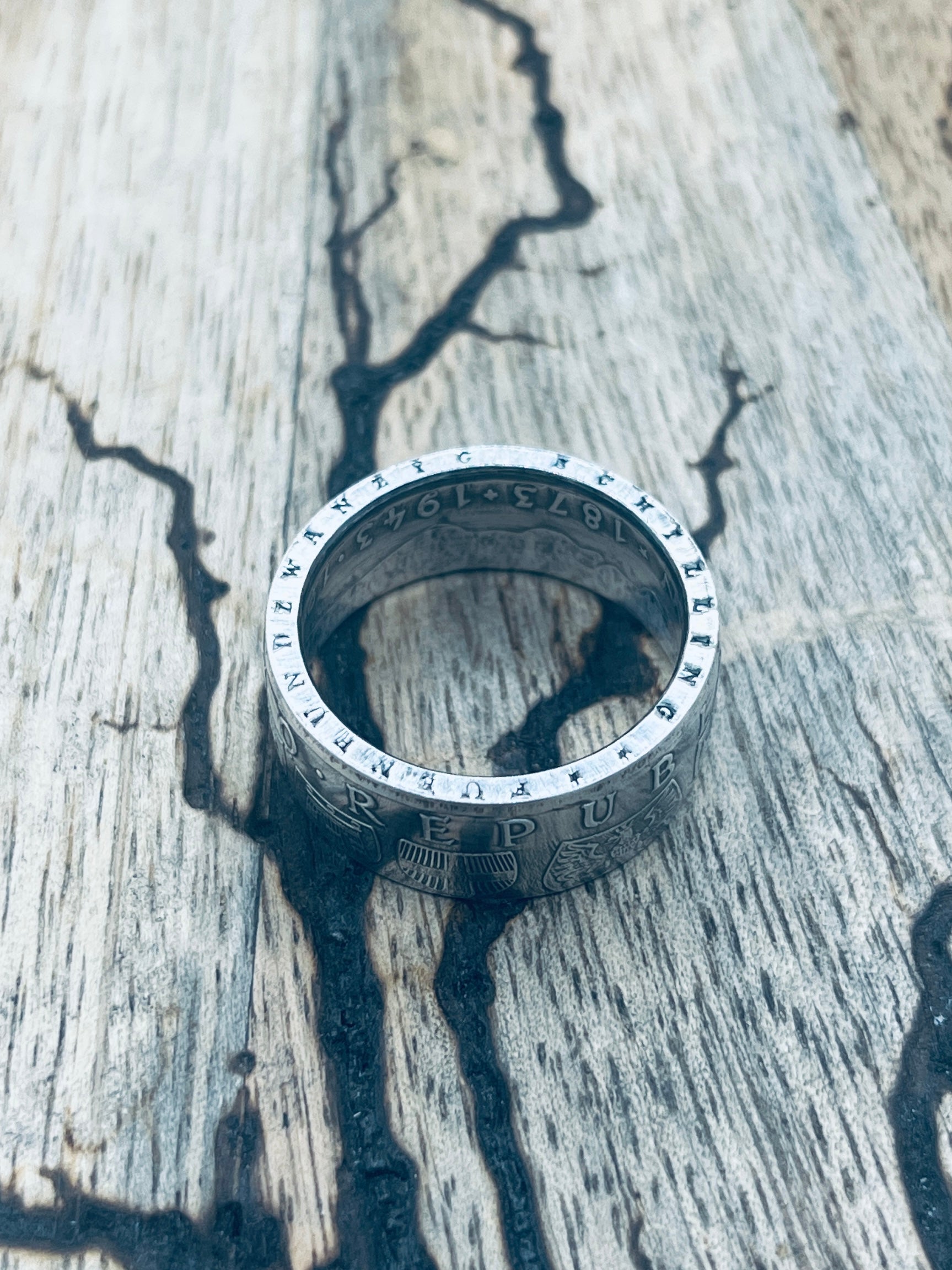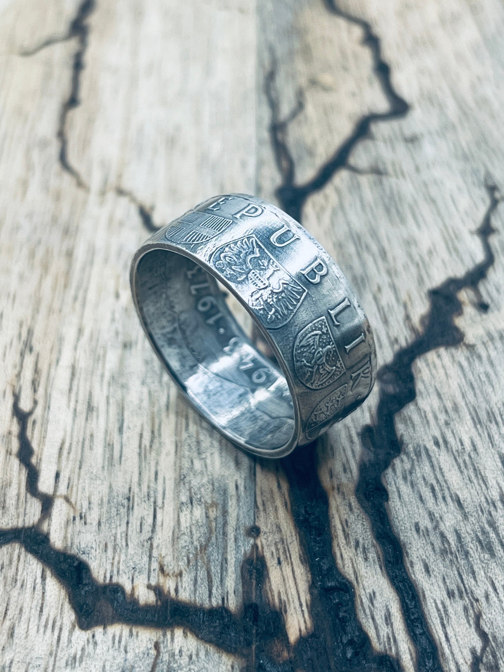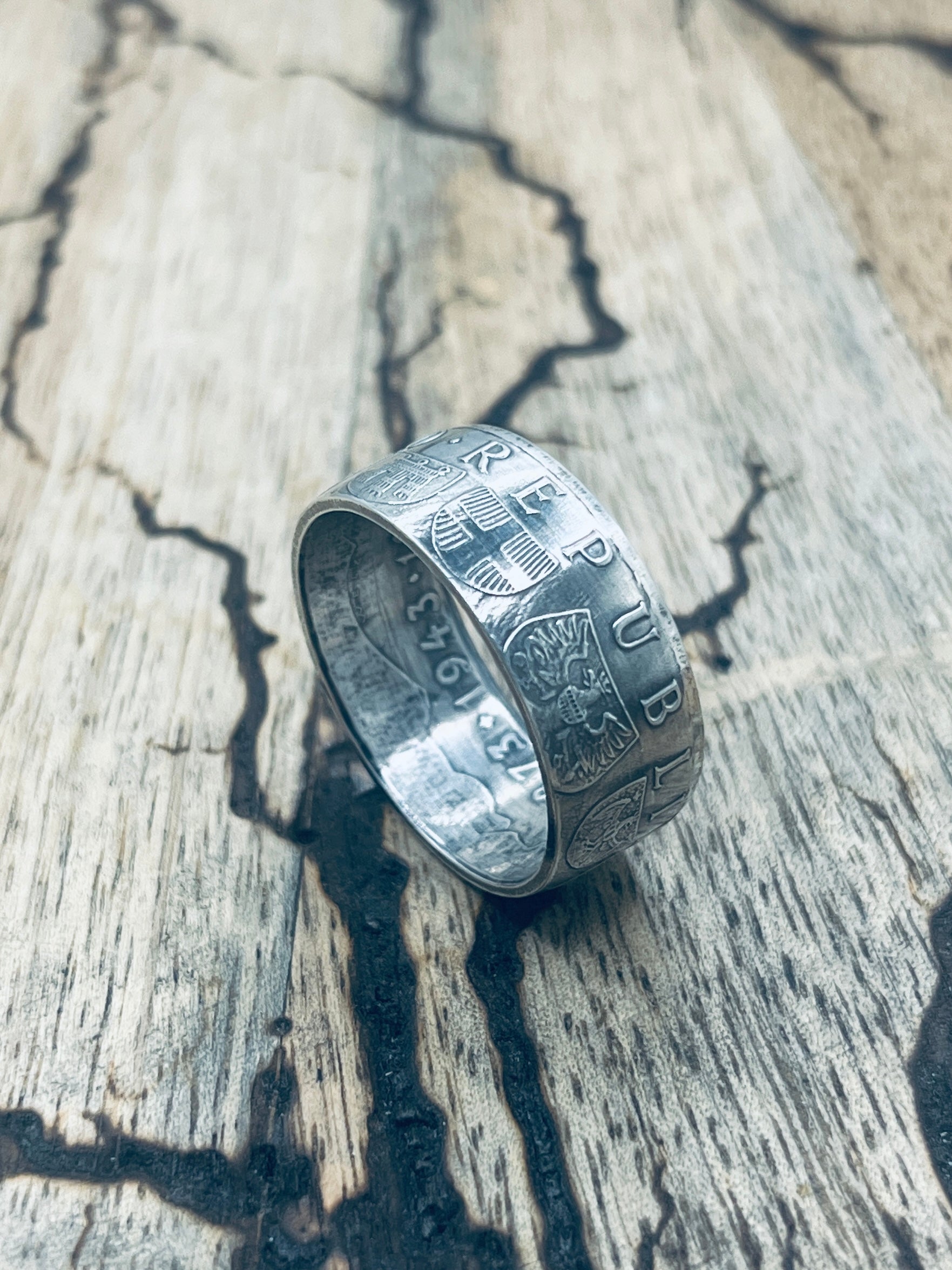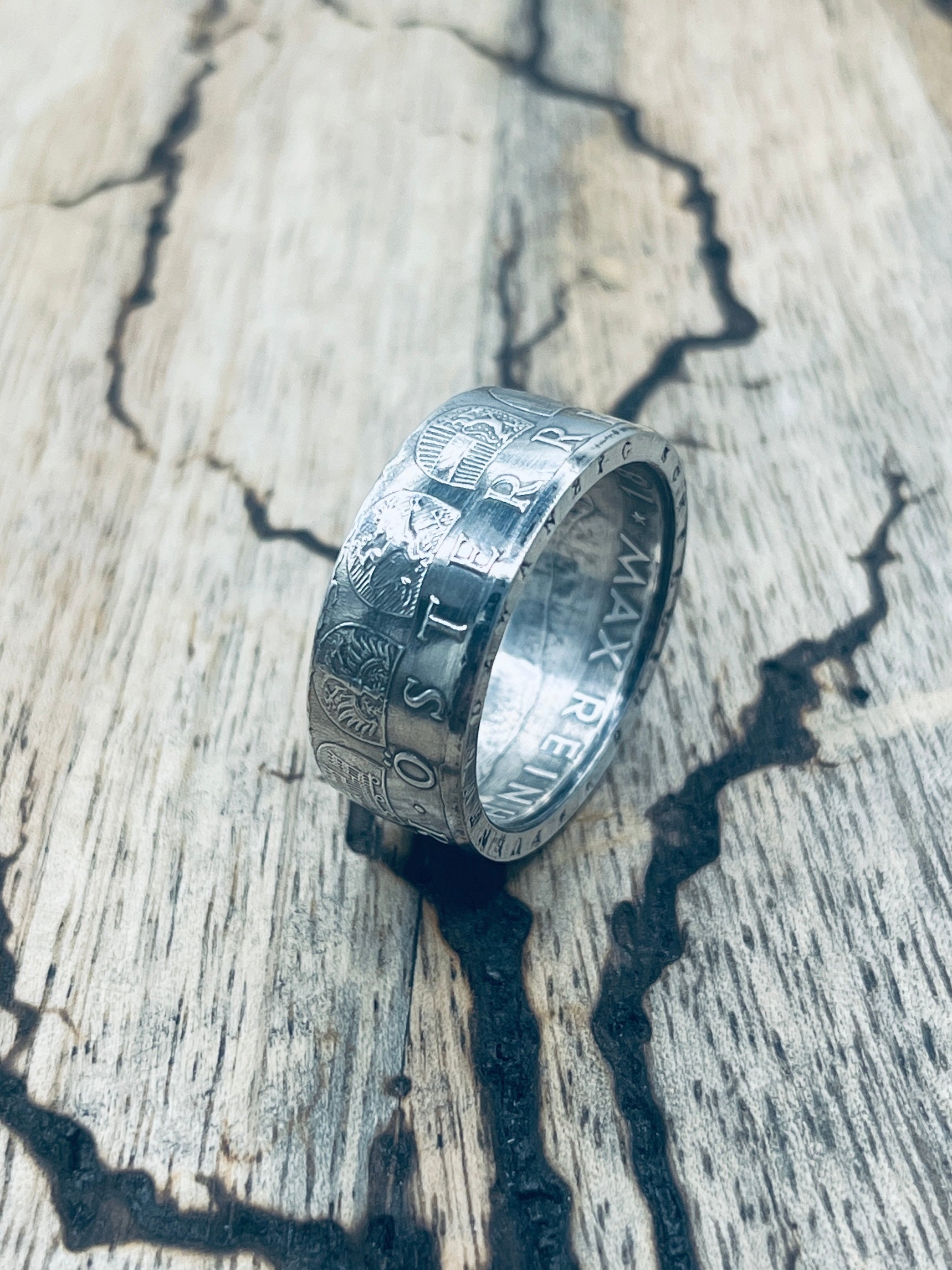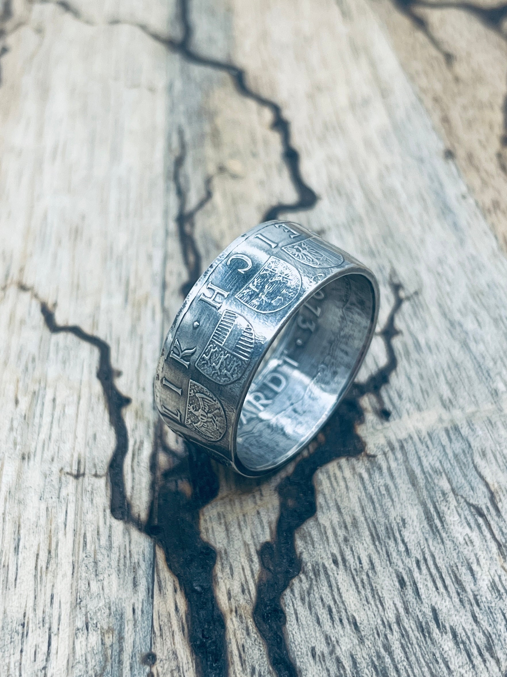 Handgefertigt aus einer alten, österreichischen Silbermünze (25 Schilling, 0,800er Silber)! Mit diesem Silberring trägt man ein Stück österreichische Geschichte am Finger.