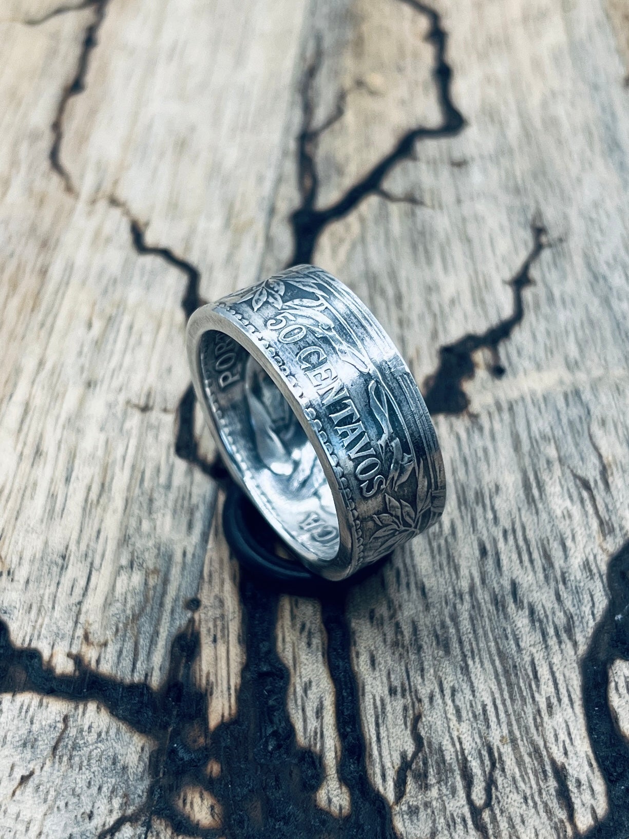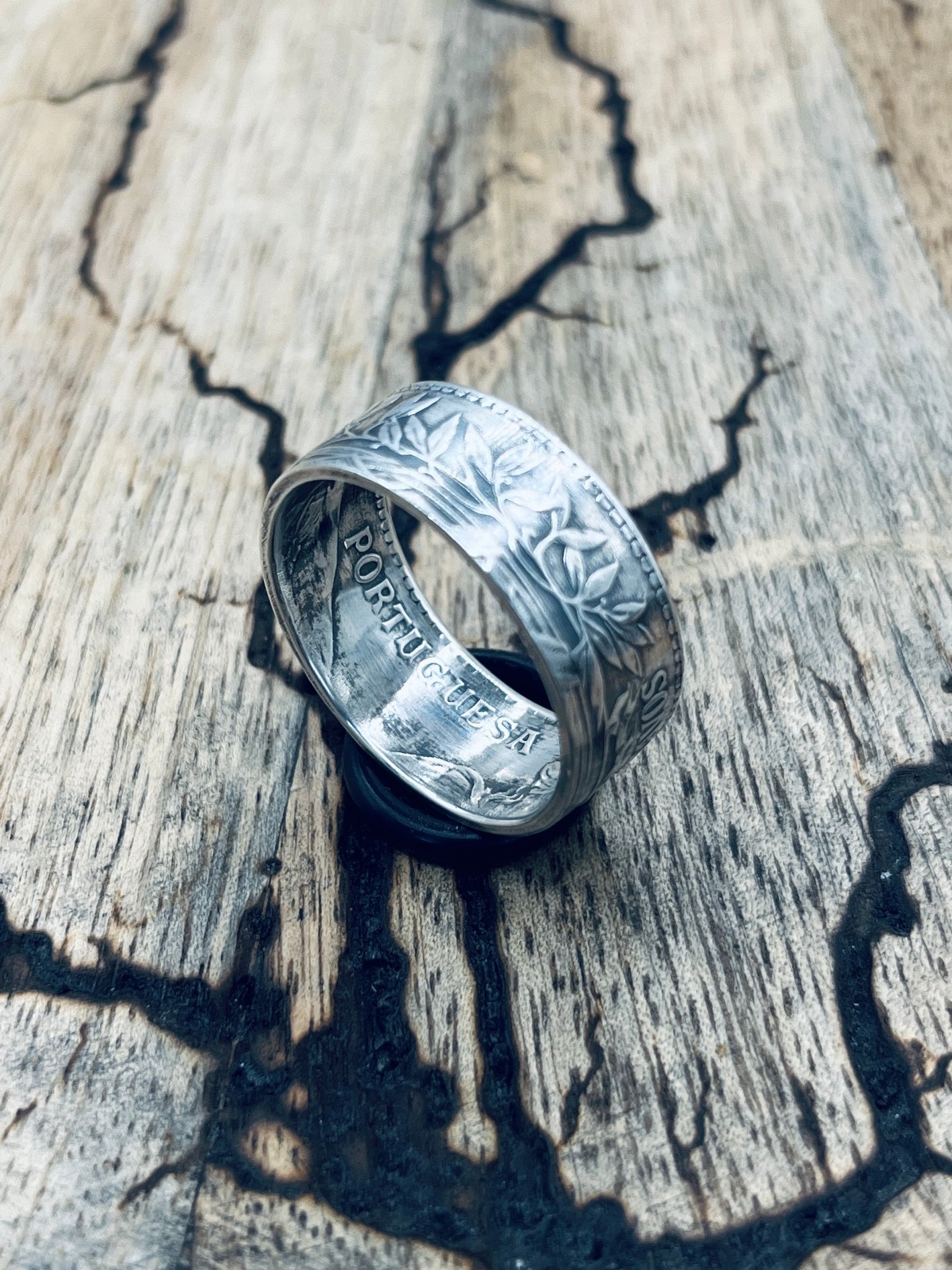 Handgefertigt aus einer alten, portugiesischen Silbermünze (50 Centavos, 0,835er Silber)! Mit diesem Silberring trägt man ein Stück portugiesische Geschichte am Finger.