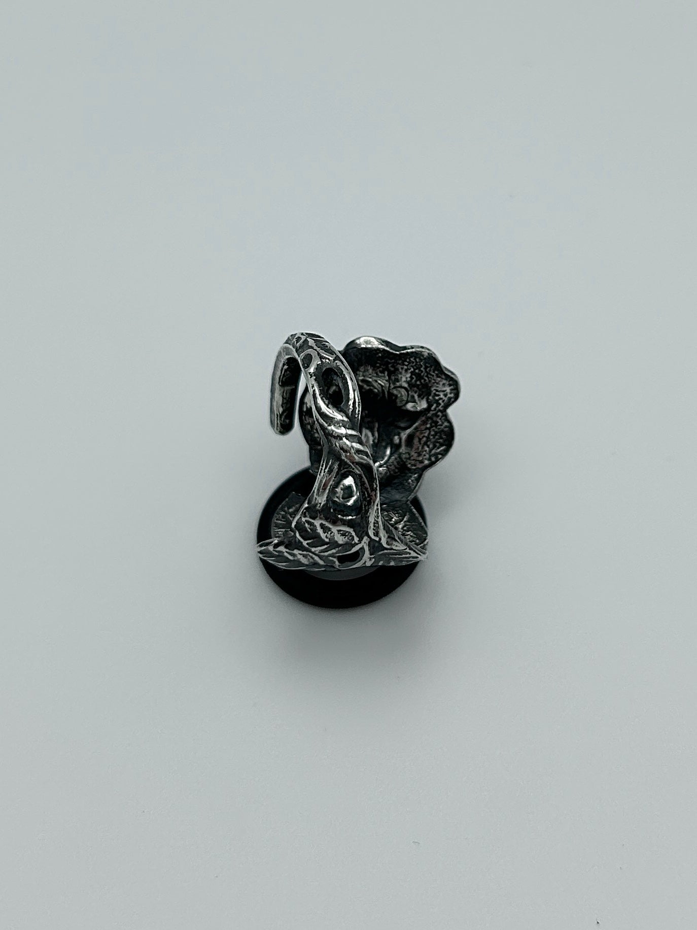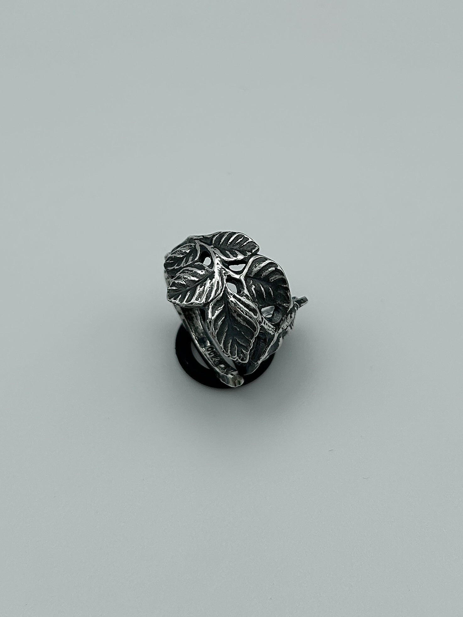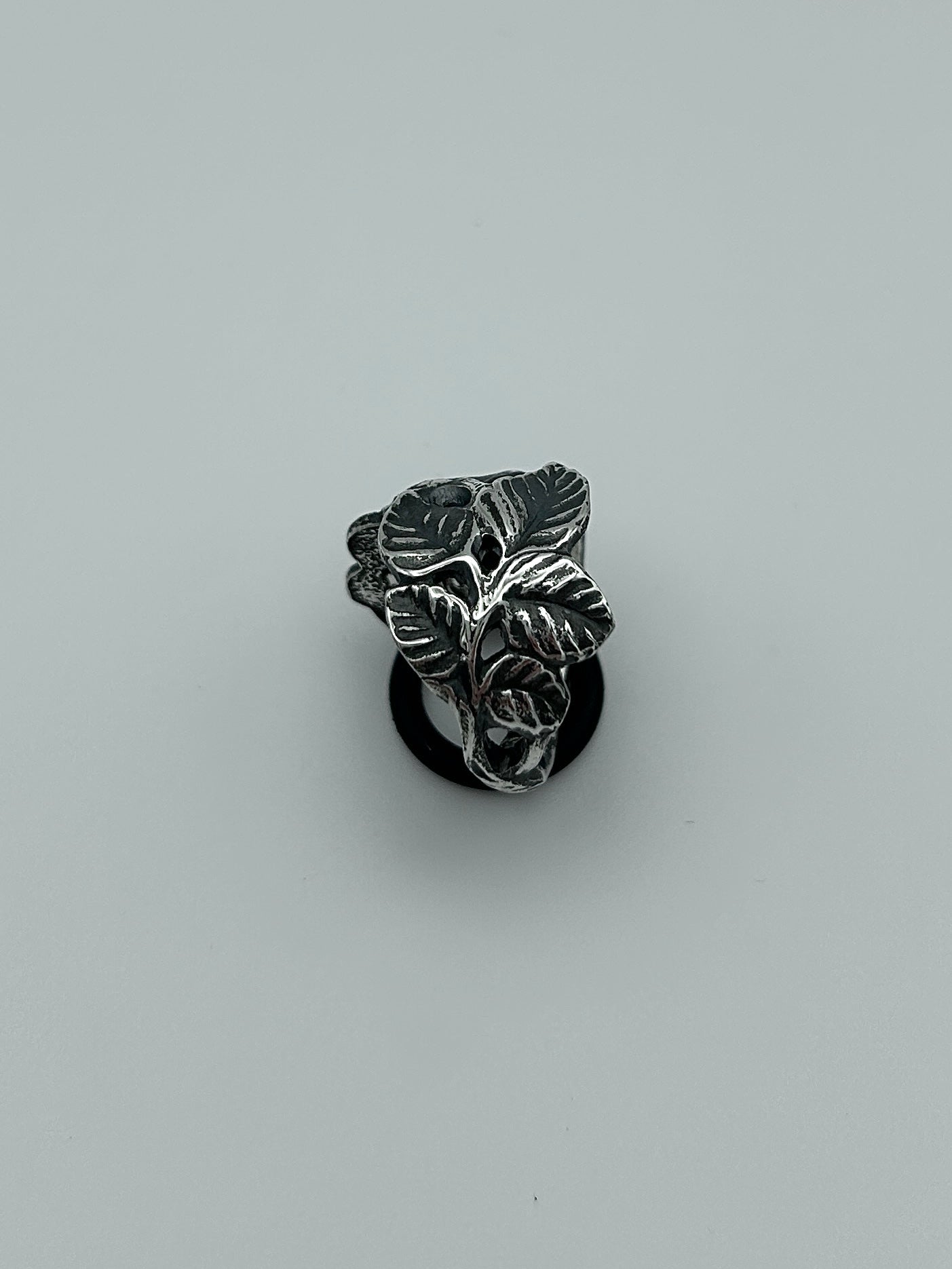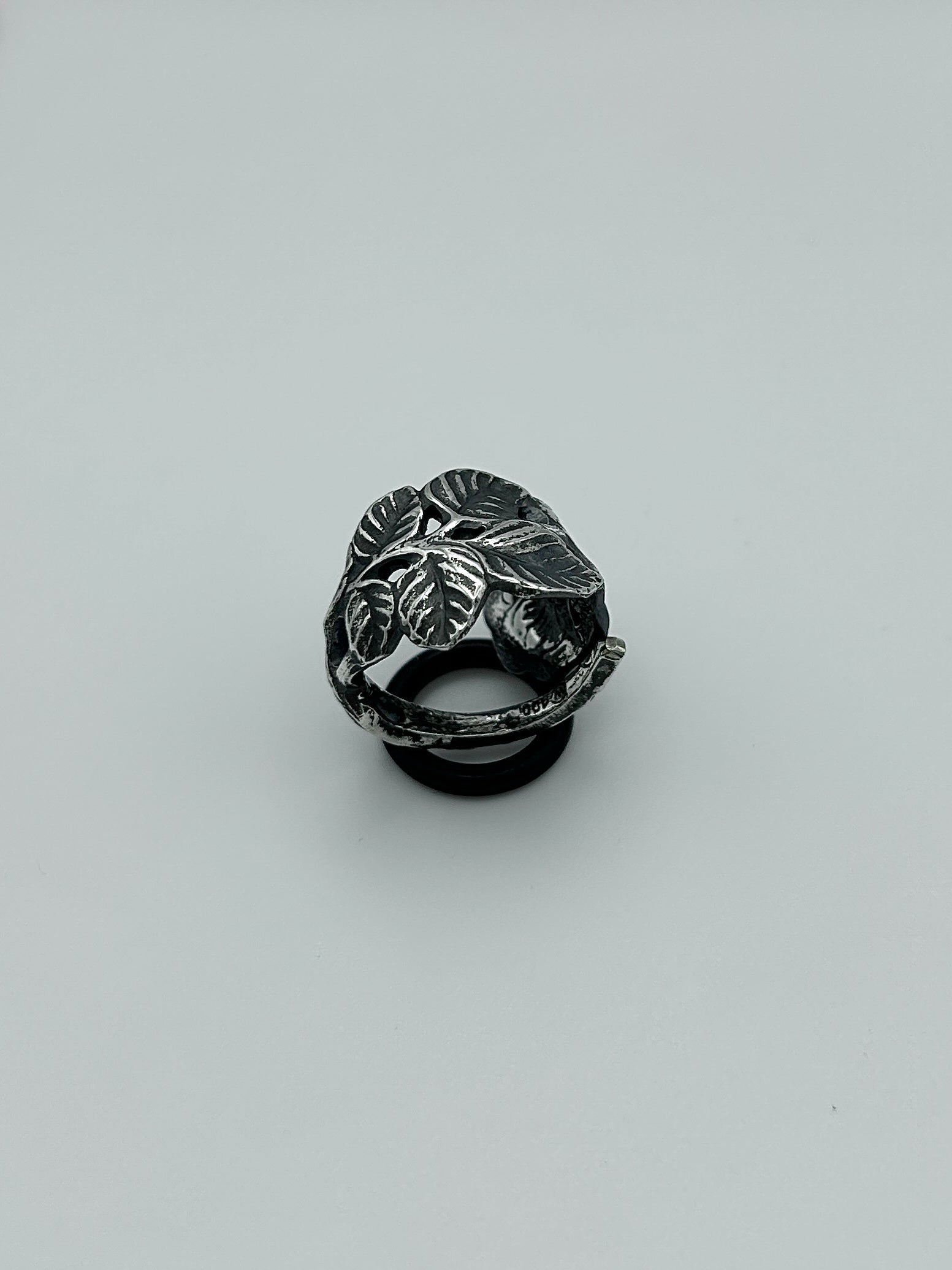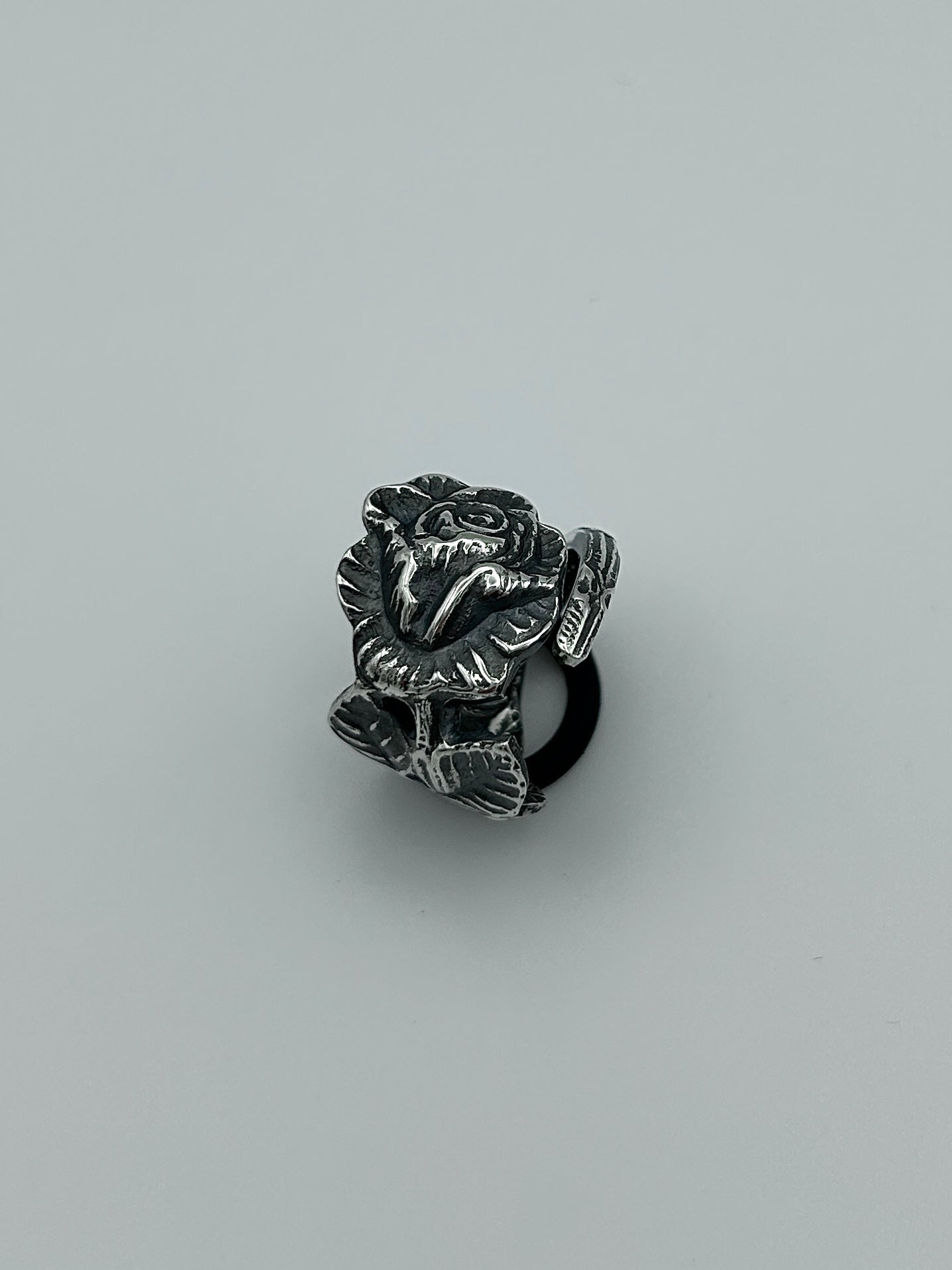 Handgefertigter Unikat-Ring aus einem alten, versilberten Besteck mit Rosenmotiv. Sorgfältig schattiert, um die feinen Details hervorzuheben. Der dunklere Kontrast verleiht dem Ring eine markante, ausdrucksstarke Vintage-Optik.